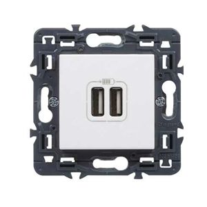 Toma cargador USB Doble VALENA NEXT Blanco Mecanismo Legrand. Instalación empotrada
