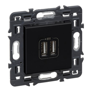 Toma cargador USB Doble VALENA NEXT Negro Mecanismo Legrand. Instalación empotrada