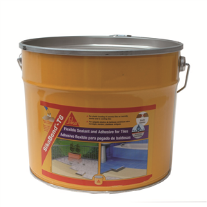 Adhesivo elástico e impermeable para pegado de baldosas. Sikabond T8. Envase 10 l. Color ocre.