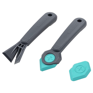 Para rascar las juntas deterioradas y alisar las juntas nuevas de silicona y acrílico. Juego "Renovación de juntas", 4 piezas, consta de rascador de juntas, 2 perfiladores de juntas y soporte correspondiente