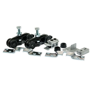 Kit Carro de cojinetes de bola con capacidad de soportar hasta 80 kg de peso. Los carros estan previstos de tornillos, garras de sujecion y topes de percusion para el montaje del panel de la puerta. Scrigno Tech
