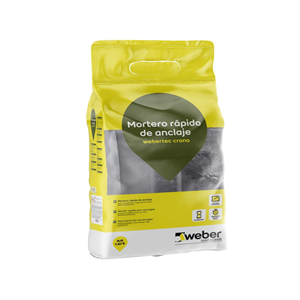 Mortero de nivelación Webertec Crono de fraguado express. Color gris. Envase de 5 kg.