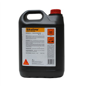 Agente limpiador Sikalimp para restos de cemento, óxidos, grasas sobre ladrillo, solados y superficies de cemento. Garrafa 5 kg. Incoloro.