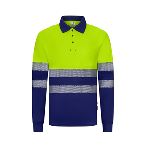 Pantalón stretch reciclado bicolor cinta segmentada alta visibilidad. azul, amarillo GRS