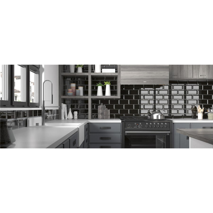 Revestimiento biselado negro brillo 10x20 cm con bisel