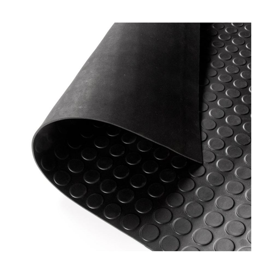 Rollo de goma con círculos de color negro de medidas 10 m x 1,2 m x 3 mm.