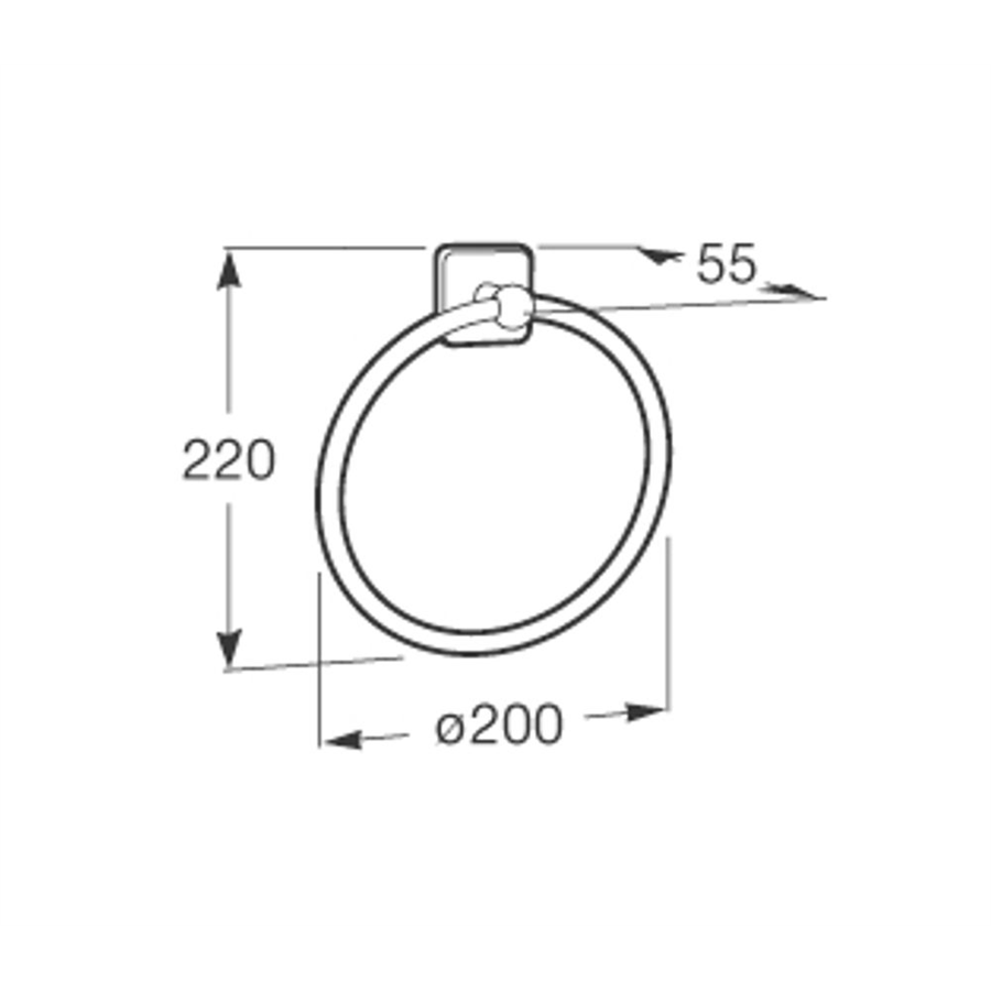 Toallero de anilla Roca Victoria para lavabo para instalar en pared. Medidas: largo 200 mm, ancho 50 mm, alto 220 mm
