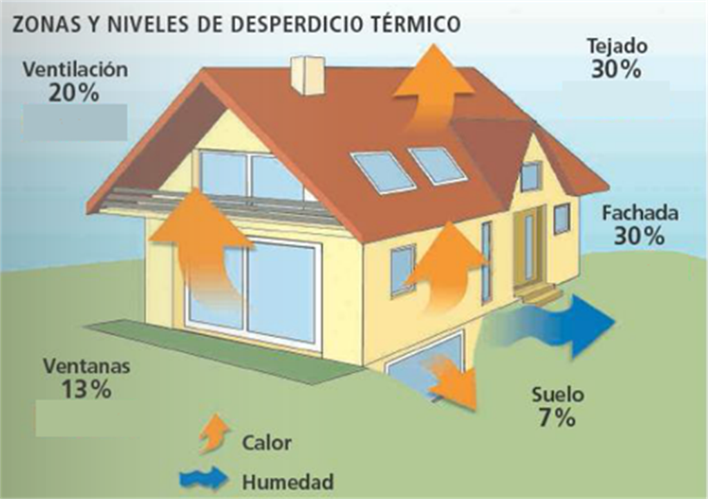desperdicio térmico proviene de fachadas y cubiertas mal aisladas. Así, mejorar la resistencia térmica de las fachadas consigue