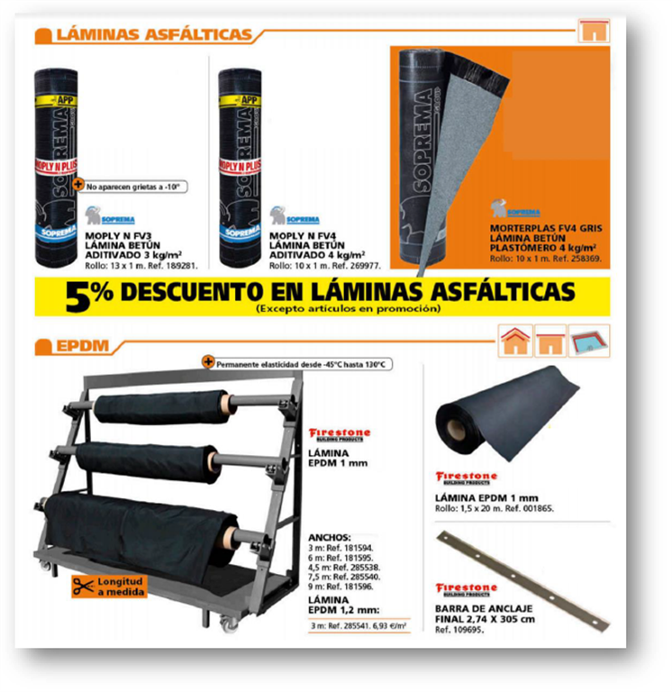 Especial Impermeabilización! Desde el 30 de septiembre hasta 2 de noviembre disfruta en nuestros almacenes y en la web de interesantes descuentos en materiales impermeabilizantes para tus proyectos de obra y reforma. ¡Encontrarás todo lo que necesitas al mejor precio!