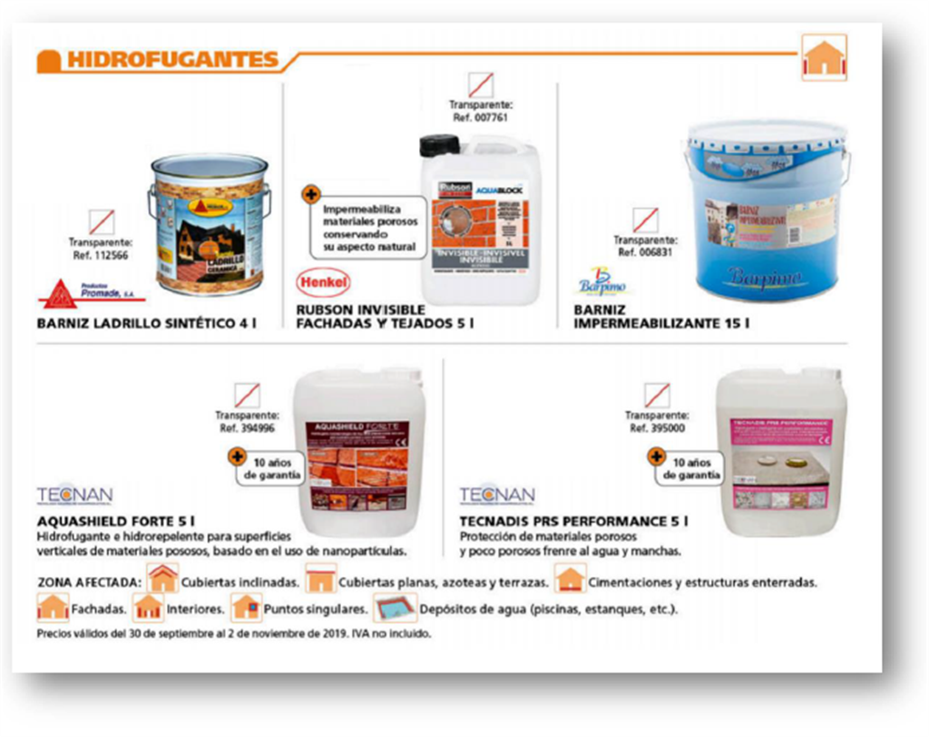 siliconas, hidrofugantes o barnices impermeabilizantes de las marcas