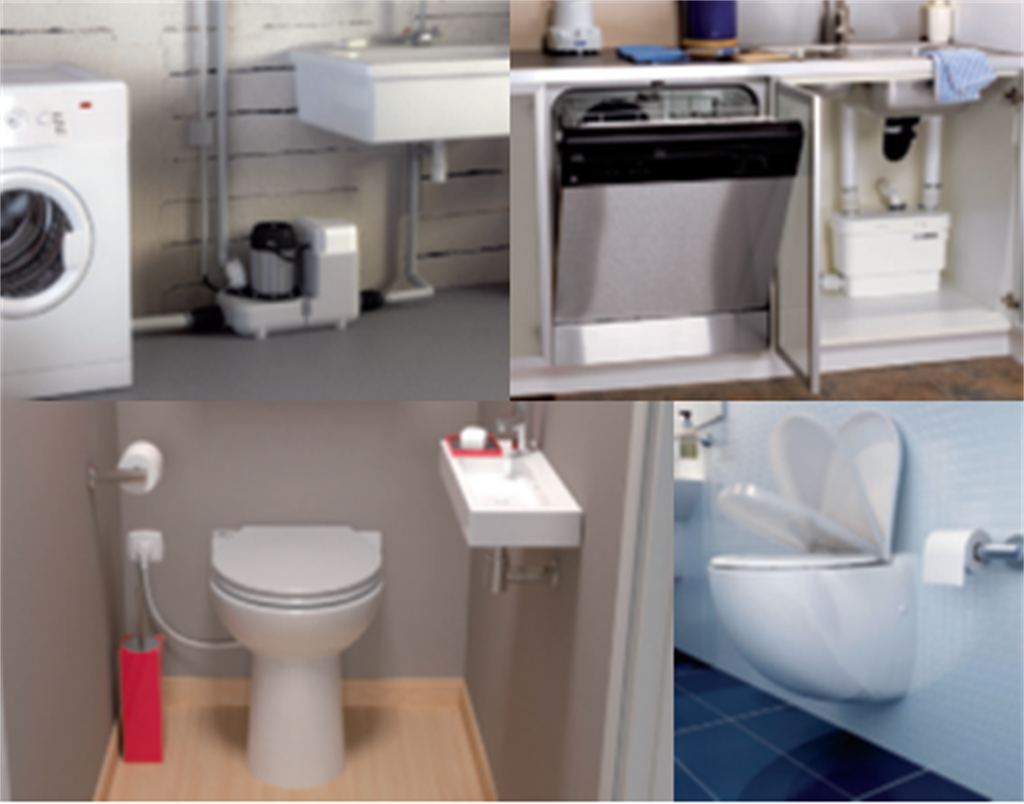 trituradores sanitarios que evitan tener que pasar tuberías de 10 mm de diámetro y, por lo tanto, instalar sanitarios en habitaciones que antes no disponían de ellos.