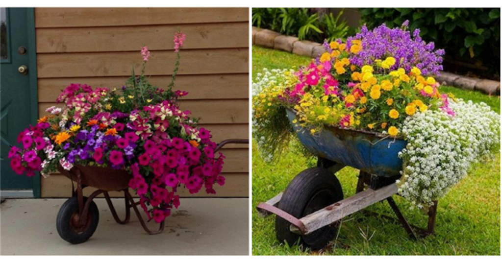 ¿Tienes una carretilla vieja y no sabes qué hacer con ella? Te proponemos que la conviertas en un bonito y original macetero. Quedará genial en tu jardín. Puedes lijarla y pintarla para darle un toque más vistoso.