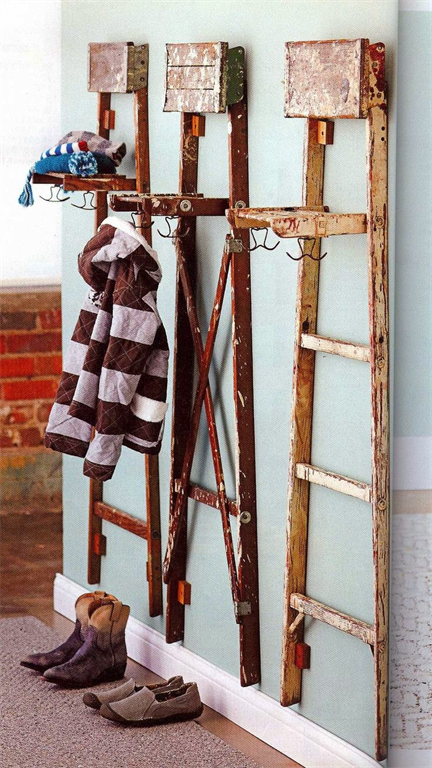 Una escalera puede convertirse en una estantería muy original, una mesita de noche o incluso un perchero para tu recibidor. Puedes colocar sobre ella tableros de madera para poner tus libros, la vajilla y todos los objetos que desees.