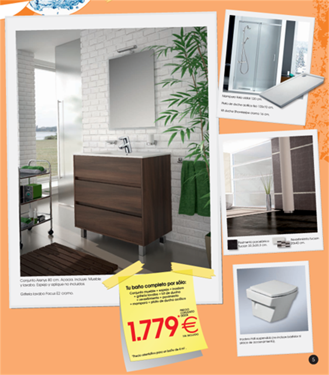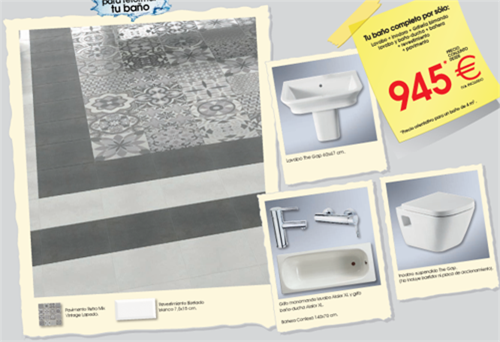 baño completo desde 765 euros* (incluye lavabo, inodoro, grifería, revestimiento, pavimento, mampara y plato de ducha). En