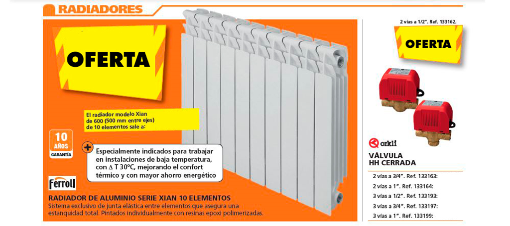 En radiadores encontraréis en oferta este modelo Xian o Europa y descuentos en Kits de válvulas.