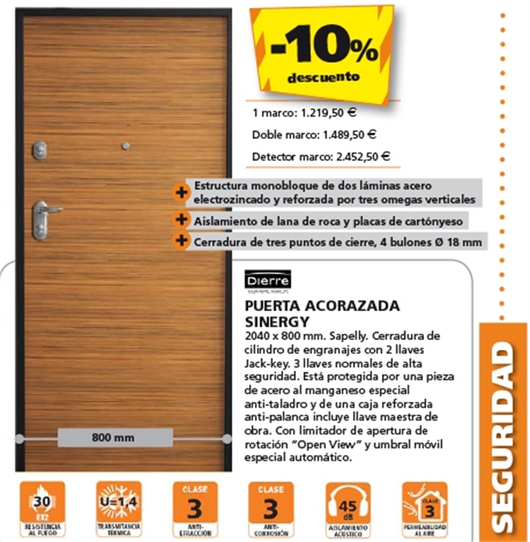 En este especial reforma exterior también incluimos una amplia variedad de puertas de seguridad, como por ejemplo la puerta acorazada Sinergy con un 10% de descuento, o los paneles decorativos de Asso5 con un 20%.