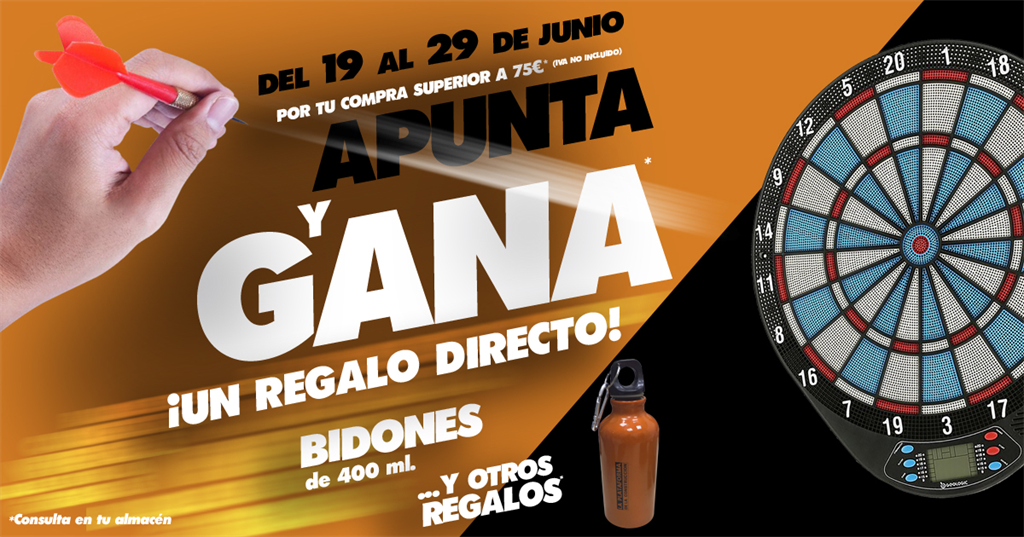 Del 19 al 29 de junio podrás disfrutar de la promoción ¡apunta y gana! Al realizar compras superiores a 75 € (IVA no incluido), tendrás derecho a tirar