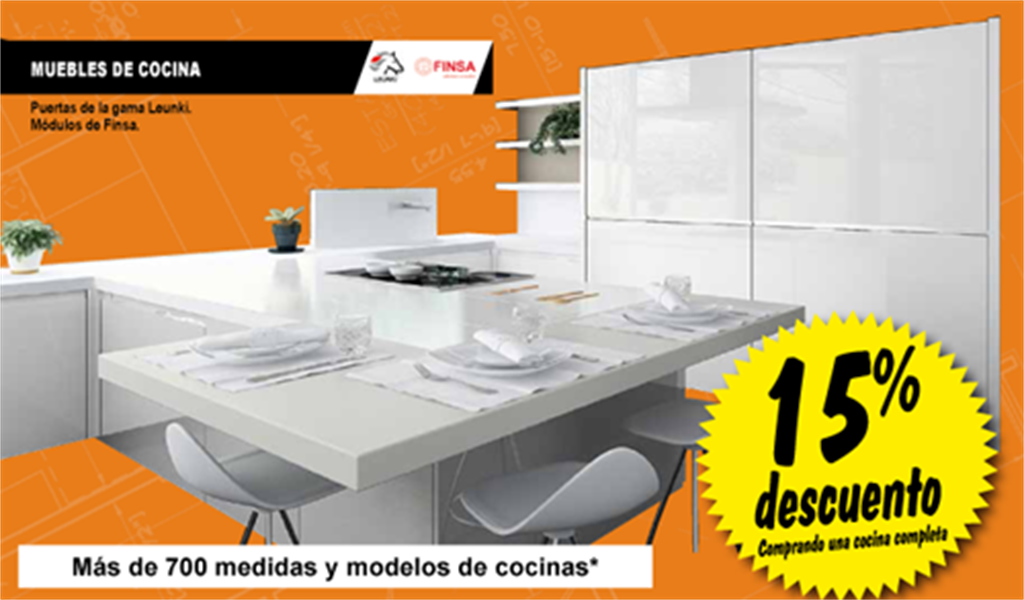 cocinas son este mes las protagonistas, porque tenemos más de 700 medidas y modelos (disponibles bajo pedido) con un 15% de
