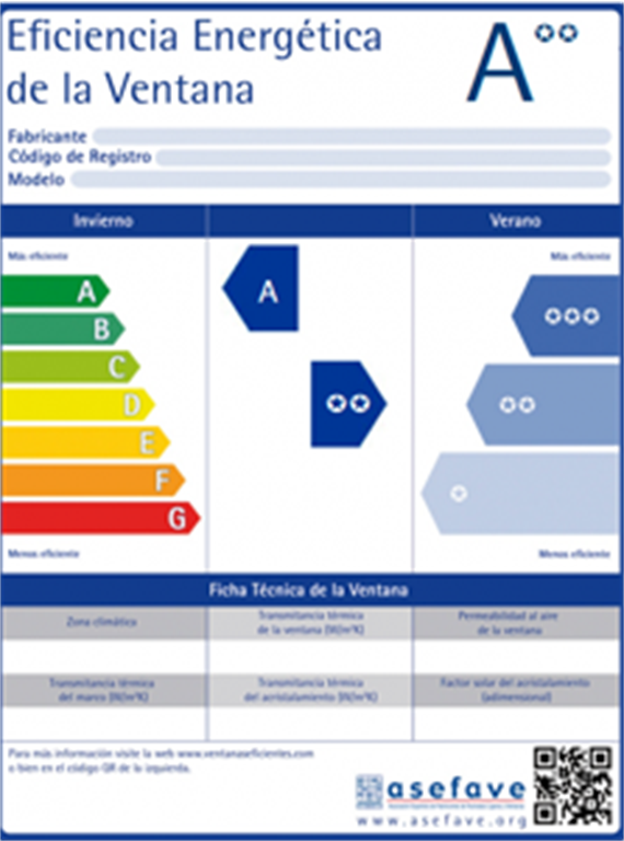 etiqueta energética de la ventana se basa en una escala gráfica de letras que va de la A hasta la G para las prestaciones de