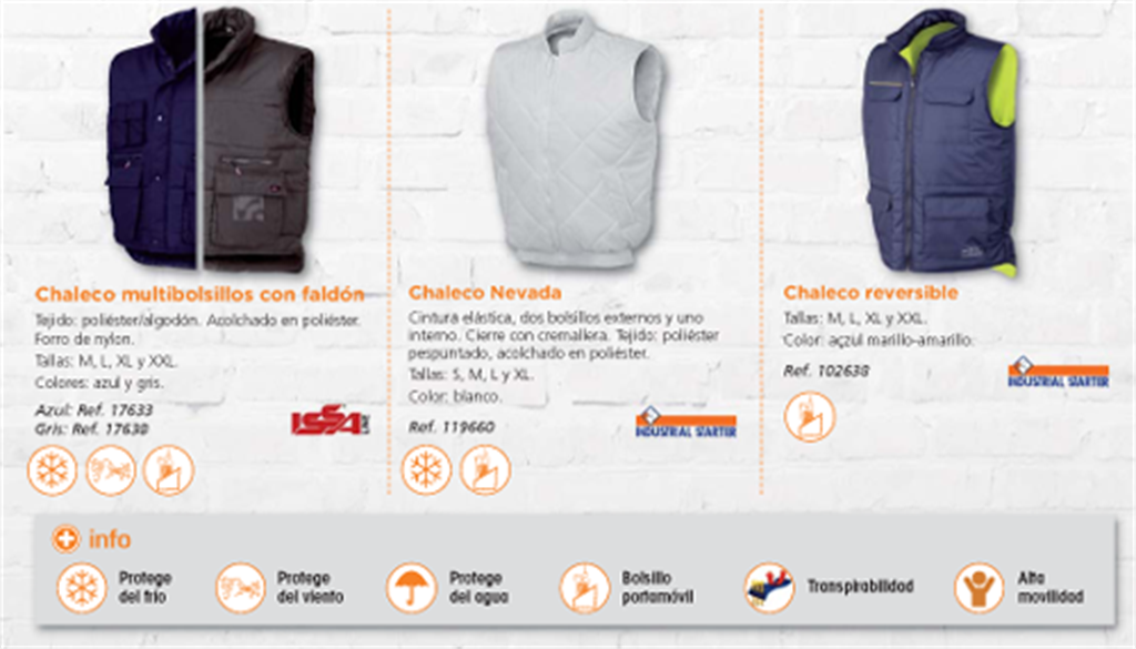 frío, se hace imprescindible protegernos de las bajas temperaturas con chaquetas, parkas, cazadoras, forros polares o chalecos acolchados. Todas estas prendas también protegen del