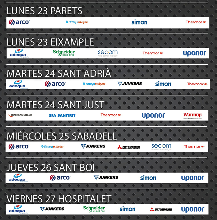 Celebramos la Semana del Lampista del 23 al 27 de julio en Barcelona. No te pierdas esta gran ocasión de conocer en profundidad muchos de nuestros productos y soluciones en electricidad y fontanería que te ofrecemos en La Plataforma de la Construcción. Ven desde las 8.00 hasta las 13.00h para conocer la calidad y variedad de los productos de nuestros almacenes y asiste cada día a demostraciones de tus marcas favoritas: valvulería de Arco, tuberías de Adequa, suelo radiante y sistemas multicapa de Fittingstándar y Uponor, mecanismos y protección modular de Scheneider, mecanismos de Simon, calefacción producción de agua caliente de Thermor y Junkers, suelo radiante eléctrico de Warmup, iluminación de Secom y sistemas de aire acondicionado de Mitsubishi. Revisa el calendario ¡y no te pierdas ninguna! Aprovecha también los grandes descuentos en multitud de productos: