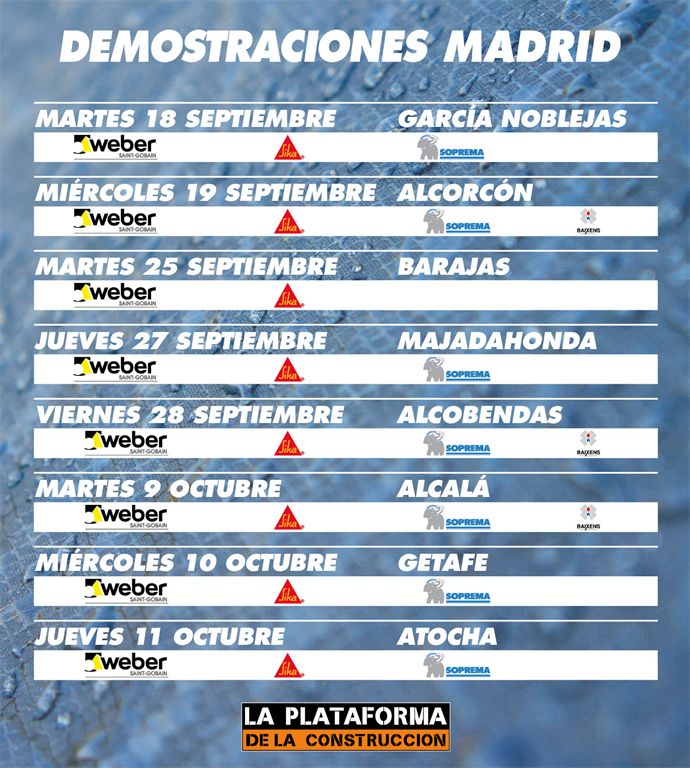 - 26 de septiembre: Formación de láminas asfálticas Soprema en Alcorcón de 9:30-13:00. Ver más.