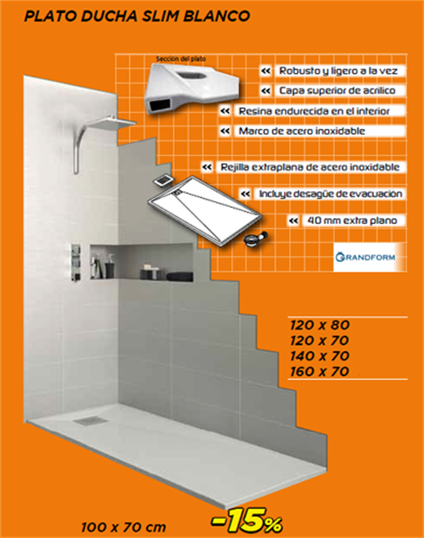 descuento en el plato de ducha Slim en color blanco de