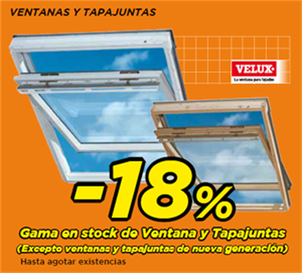 Velux (salvo las de nueva generación), el 15% en diversas pinturas con