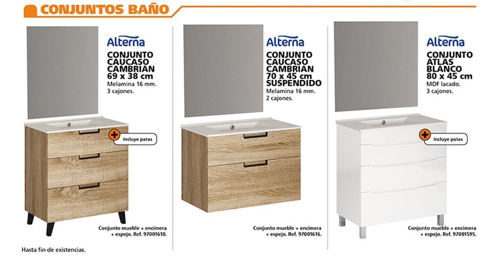muebles de baño, elige entre una gran variedad de opciones: con patas o suspendidos, blancos o color madera. Llévate gratis un grifo L20 con la compra del conjunto victoria blanco con dos cajones con un -12% de descuento. Si tienes alguna duda sobre