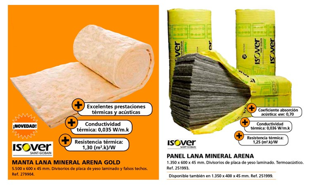 lana mineral, que ofrecen unas excelentes prestaciones térmicas y acústicas, y