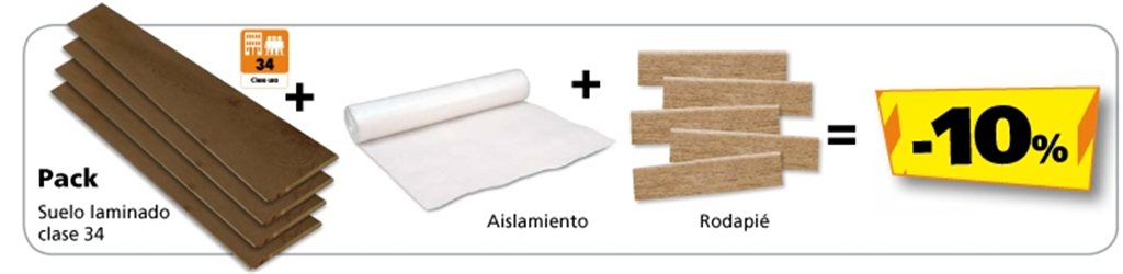 suelo laminado AC5-33 de LamiPro. Y también con un 10% de descuento si compráis el pack de suelo clase 34 con su aislamiento y rodapié. En el caso de que la zona a reformar sea húmeda, os recomendamos el suelo vinílico en click Luxury o el vinílico-flotante multicapa Allure.