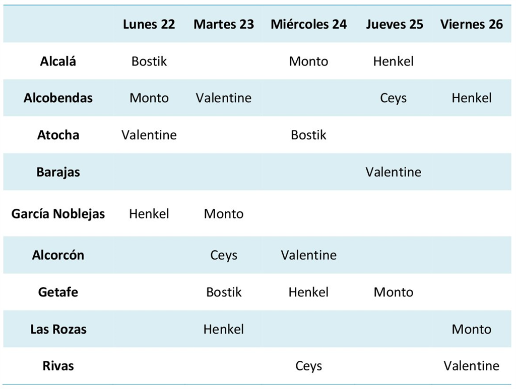 ¿Estás preparado? Agárrate las brochas porque llega, ¡la Semana de la Pintura! Del 22 al 26 de mayo tendremos en nuestros almacenes dela Plataforma de la Construcción a nuestros proveedores habituales para que consigas multitud de ventajas. Ven a nuestros almacenes para hablar con los especialistas de las principales marcas de pintura, selladores, adhesivos y siliconas. Podrás probar las pinturas, asistir a demostraciones y, por supuesto, aprovechar los grandes descuentos en productos seleccionados que tendremos durante toda la semana, en todos los centros. Para ponértelo mucho más fácil te dejamos este calendario con las marcas que estarán en cada uno de nuestros centros. Elige el día y la marca que prefieras, ¡y ven a disfrutar de esta fantástica semana! Si tienes alguna duda sobre la Semana de la Pintura, puedes preguntarnos a través de Twitter y Facebook ¡Estaremos encantados de resolver todas tus cuestiones! MADRID