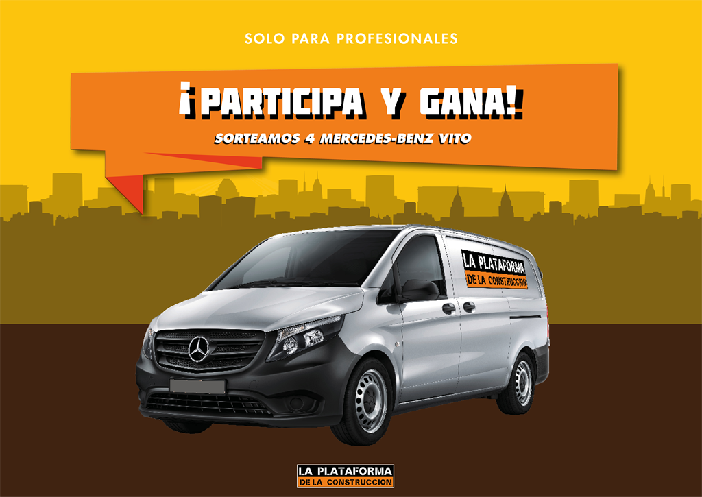 ¿Cuál es el premio? La furgoneta Mercedes Vito es un vehículo totalmente profesional y perfecto para cargar y transportar los materiales de tus obras. Dispone de espacio para todo lo que necesites, con una carga útil de hasta 949 kg y una longitud del compartimento carga de casi 2,83 metros.