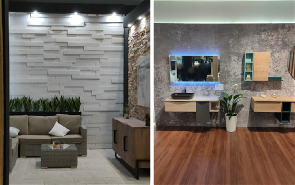 - Las paredes toman cuerpo, puesto que los relieves y las texturas se imponen a través de piezas con volumen tridimensional.