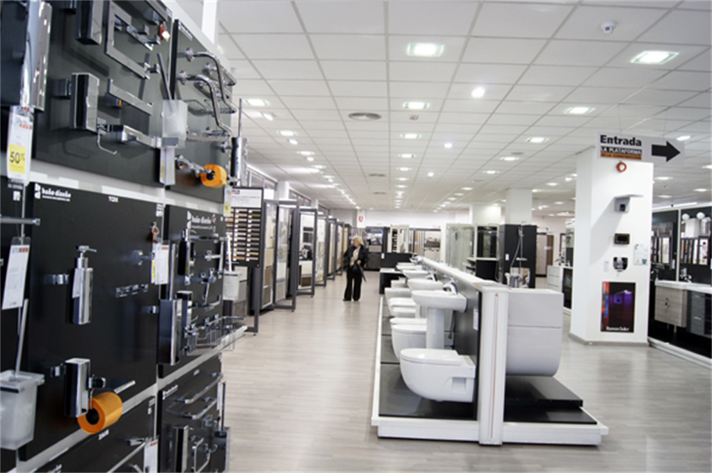 tiendas de La Plataforma Baño y Cerámica encontrarás en una amplia exposición con gran variedad de pinturas, papel pintado, cerámica para paredes y suelos, puertas, tarima flotante, así como mobiliario, sanitarios y otros accesorios de baño.