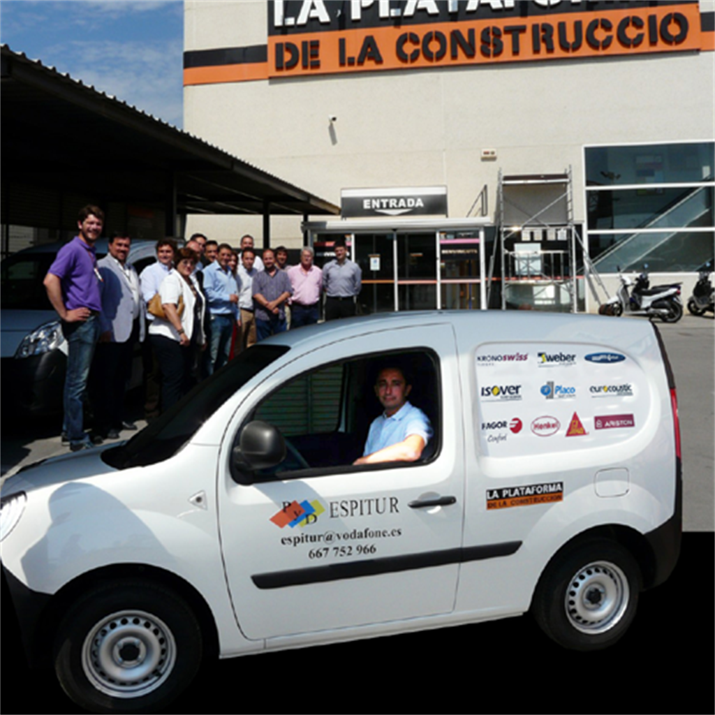 Representantes de las empresas Beissier, Hitachi, Placo, Isover, Sika, Weber, Áridos Envasa, Semin, entre otros, quisieron acompañarnos en estos actos de entrega de las cuatro furgonetas como proveedores de La Plataforma y patrocinadores de este