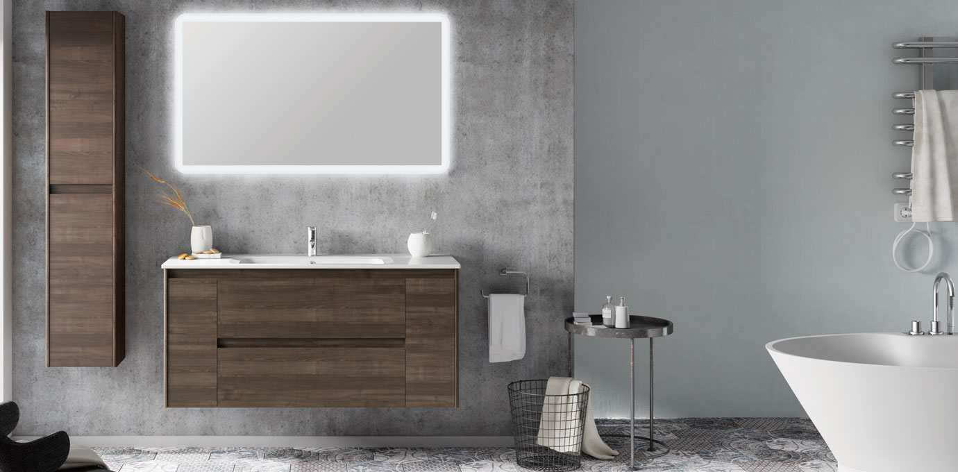 • Muebles completos que incluyen lavabo, espejo y aplique.