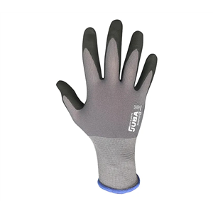GUANTES "Keep Safe®" soporte de Poliéster color gris con palma nitrilo FOAM color negro. Sin costuras