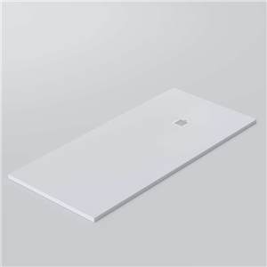 Plato de ducha de resina con carga mineral acabado gel coat blanco. Antideslizante C3 con textura pizarra. Incluye rejilla en acabado blanco y válvula de desagüe