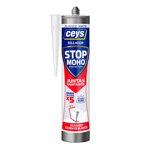 Sellador acabado mortero sintético especial para juntas. Color blanco. Envase de 290 ml.